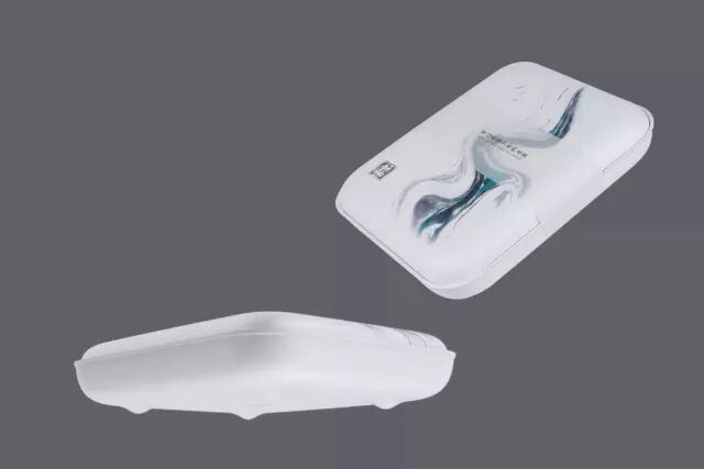在材质上,采用环保可再生的湿压纸浆模塑一体成型包装设计,选用白色为主色调,调子的柔和性进一步增强了作品所具有的安静和纯朴之感。