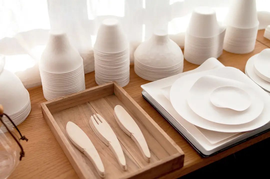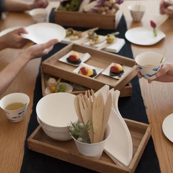 下面再分享来自日本的一次性餐具品牌Wasara,他们开创了一次性餐具的设计潮流,将环保与设计完美结合,让一次性餐具看起来如陶瓷般高雅。